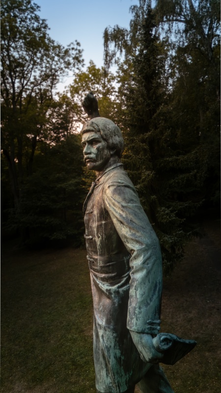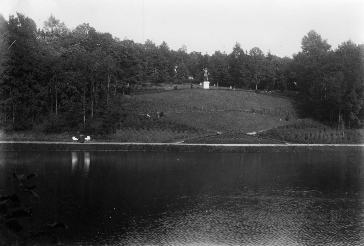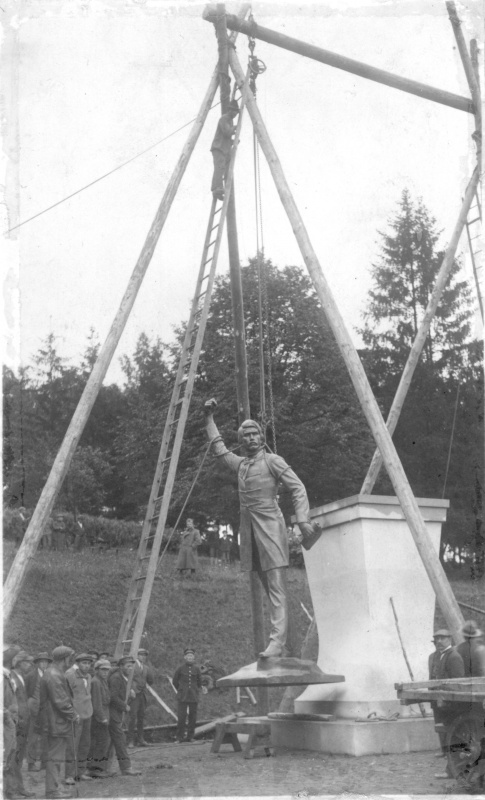 Ve sporu o místo se promítaly zájmy osobní i stranické. Důležitým se stalo stanovisko ministerstva školství a národní osvěty. V červnu 1920 městská rada vzala na vědomí usnesení komitétu o stavbě pomníku v parku a v říjnu byl položen základní kámen. Byl vybrán návrh prof. B. Kafky (1878-1942), žáka S. Suchardy a J. V. Myslbeka, autora mnoha plastik známých osobností. Základem Havlíčkova bronzového pomníku se stala (zásluhou ministra obrany V. Klofáče) válečná děla rakouské armády. Socha měří 4,5m. Realizace pomníku trvala dva roky, finance byly získány veřejnou sbírkou. Socha byla odhalena 14. 9. 1924 za účasti mnoha politických osobností. Slavnostní projev přednesl předseda Poslanecké sněmovny F. Tomášek. Osud bronzového pomníku byl zpečetěn za německého protektorátu, kdy se ze soch opět stávaly kanóny. V roce 1943 byl pomník odstraněn, převezen do Prahy a určen k likvidaci. Díky statečnosti lidí byla socha zachráněna a slavnostně vrácena do města, přejmenovaného již na Havlíčkův Brod, a to dne 6. 7. 1946 při příležitosti Havlíčkových oslav k 90. výročí jeho úmrtí. Tentokrát byl pomník odhalen za přítomnosti prezidenta E. Beneše a ministra zahraničních věcí J. Masaryka.