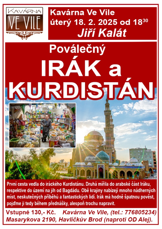 První cesta vedla do iráckého Kurdistánu. Druhá mířila do arabské část Iráku, respektive do území na jih od Bagdádu. Obě krajiny nabízejí mnoho nádherných míst, neskutečných příběhů a fantastických lidí. Irák má hodně špatnou pověst, pojďme ji tedy během přednášky, alespoň trochu napravit.