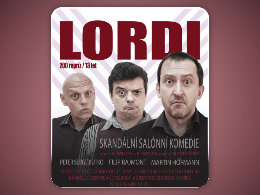 Rozverná komedie o třech rozpustilých slovenských lordech, kteří si v londýnském pánském klubu vyprávějí o svých milostných úspěších. Zážitky jsou to košilaté, ale ten největší na lordy teprve čeká a diváci si jej vyslechnou tak říkajíc z první ruky.. Kdo tuto komedii již viděl, tak ji určitě bude chtít vidět zase, a kdo ji ještě neviděl, neměl by si ji nechat ujít. Bavit se bude celý sál. Dámy, vezměte do divadla i své protějšky! Hra je vhodná i pro muže, kteří před návštěvou divadla dávají přednost vůni kouře doutníků a chuti skvěle vychlazeného bourbonu...Naopak školní dítka do 15 let a puritánsky založené ženy nechte raději doma.