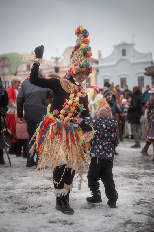 Uvidíte tradiční maškary, strašidla i řemeslné postavy. Návštěvníky rozveselí Divadlo T.E.J.P. se svými nadživotními loutkami a nebude chybět ani povoz s koňmi.