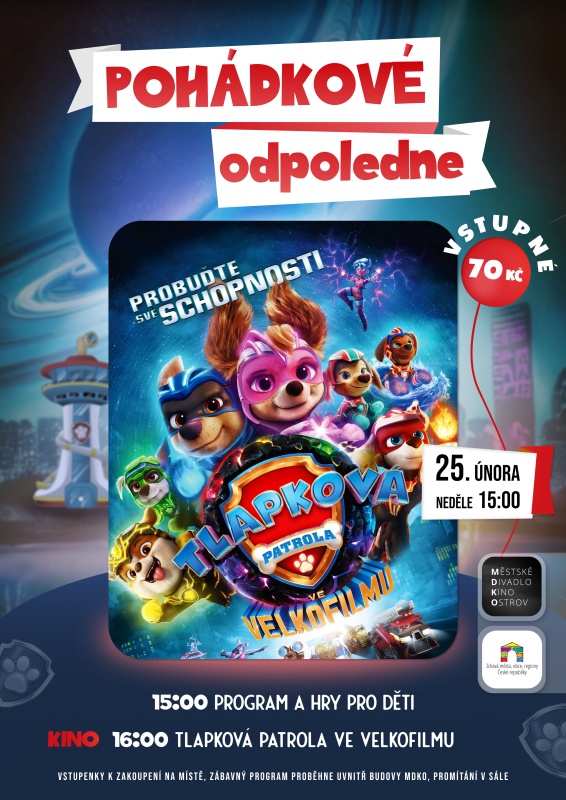 od 16:00 promítání filmu v kinosále Tlapková patrola ve velkofilmu