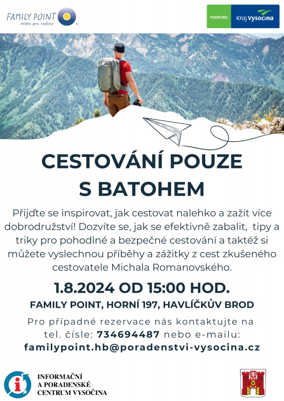 Dozvíte se, jak se efektivně zabalit na cesty a zároveň si můžete vyslechnout příběhy cestovatele Michala Romanovského.