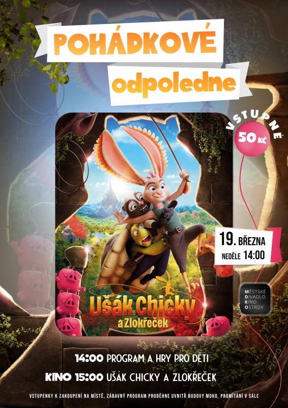 od 15:00 promítání filmu v kinosále Ušák Chicky a Zlokřeček